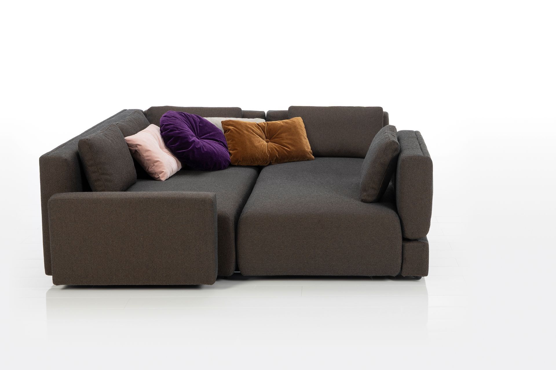 Besonders kompakt, piano small ist geprägt durch kubisch-weiche Formensprache, harmonisches Polstervolumen, exzellenten Sitzkomfort und vielseitige Verwandlungsoptionen.